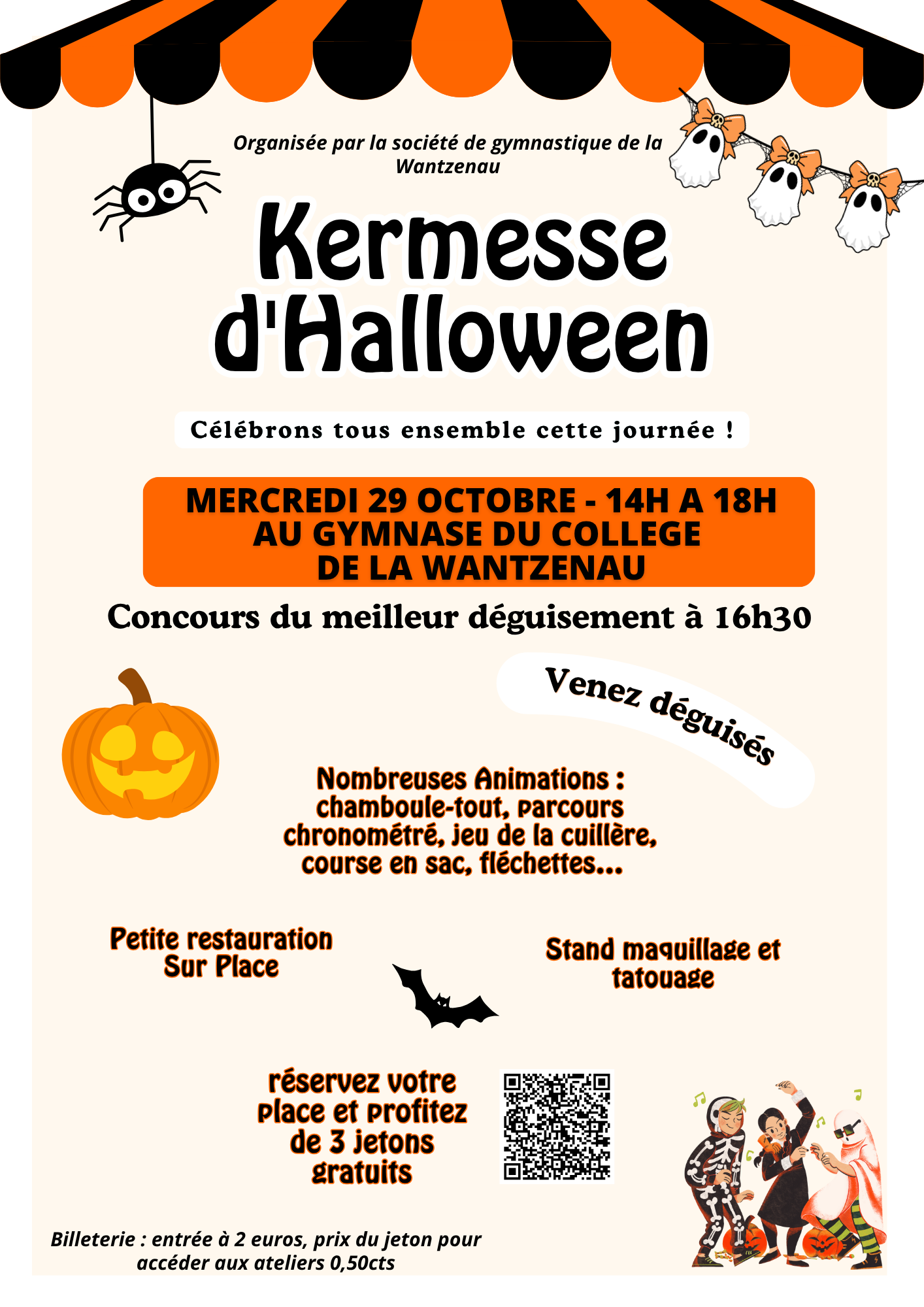La Société de Gymnastique de La Wantzenau organise un KERMESSE D'HALLOWEEN le mercredi 29 octobre de 14h à 18h au Gymnase du Collège.