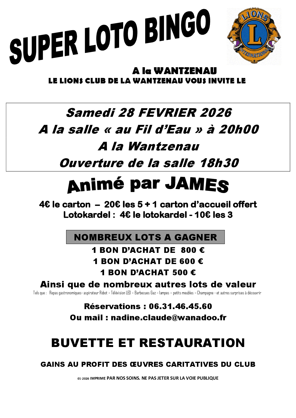 Réservations au 06 31 46 45 60 ou nadine.claude@wanadoo.fr